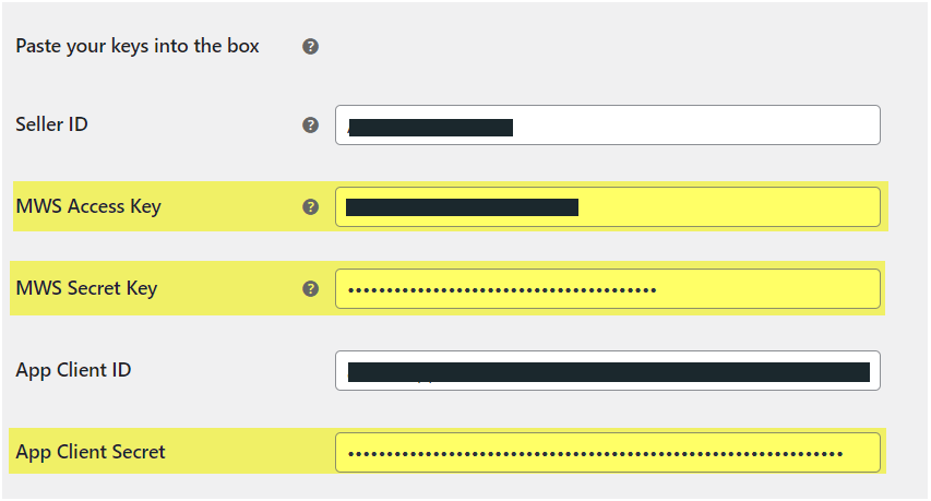 - Incolla la tua chiave di accesso segreta nel campo MWS Secret Key.